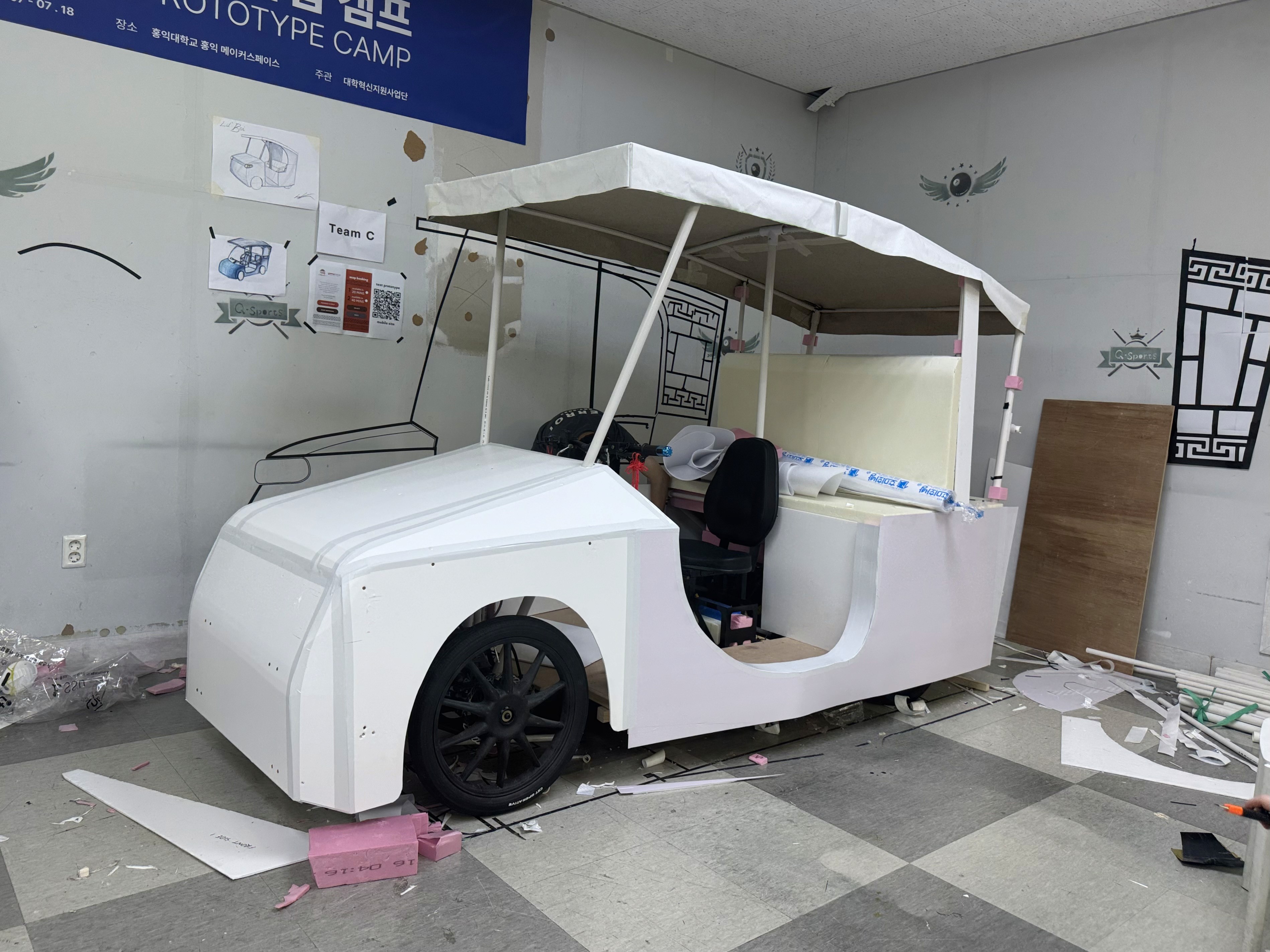 Eva Foam, Wood, Acrylic, canvas, pvc pipes, pink foam, cardstock, electrical tape
