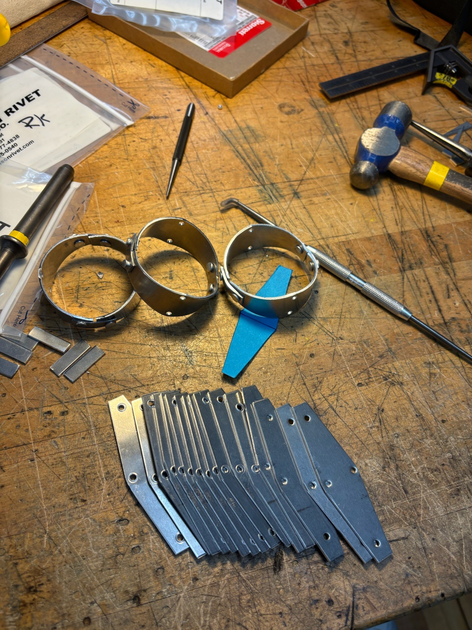 Like all works, this project started at conception with lots of ideation and variation testing. I ran through a variety of form factors, paper models, and aluminum prototypes. After figuring out the design I wanted, I created a manufacturing process for my modules. This piece made use of mainly a jump shear, anvil, punch, and slip roller.